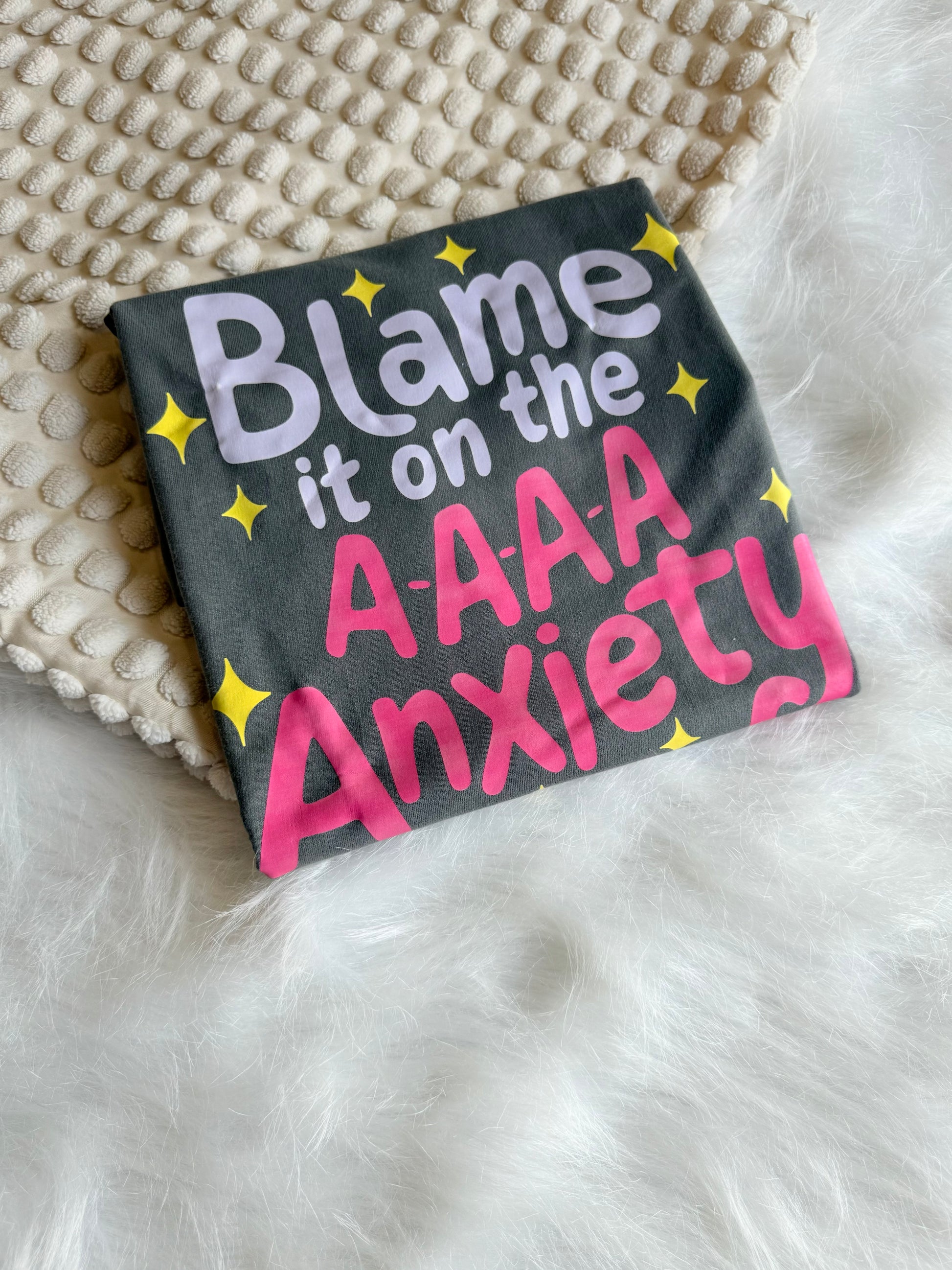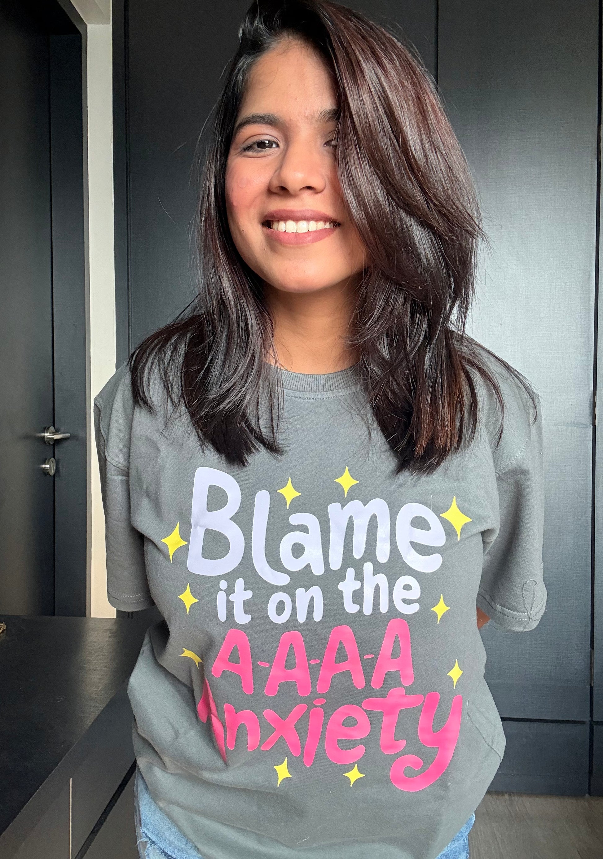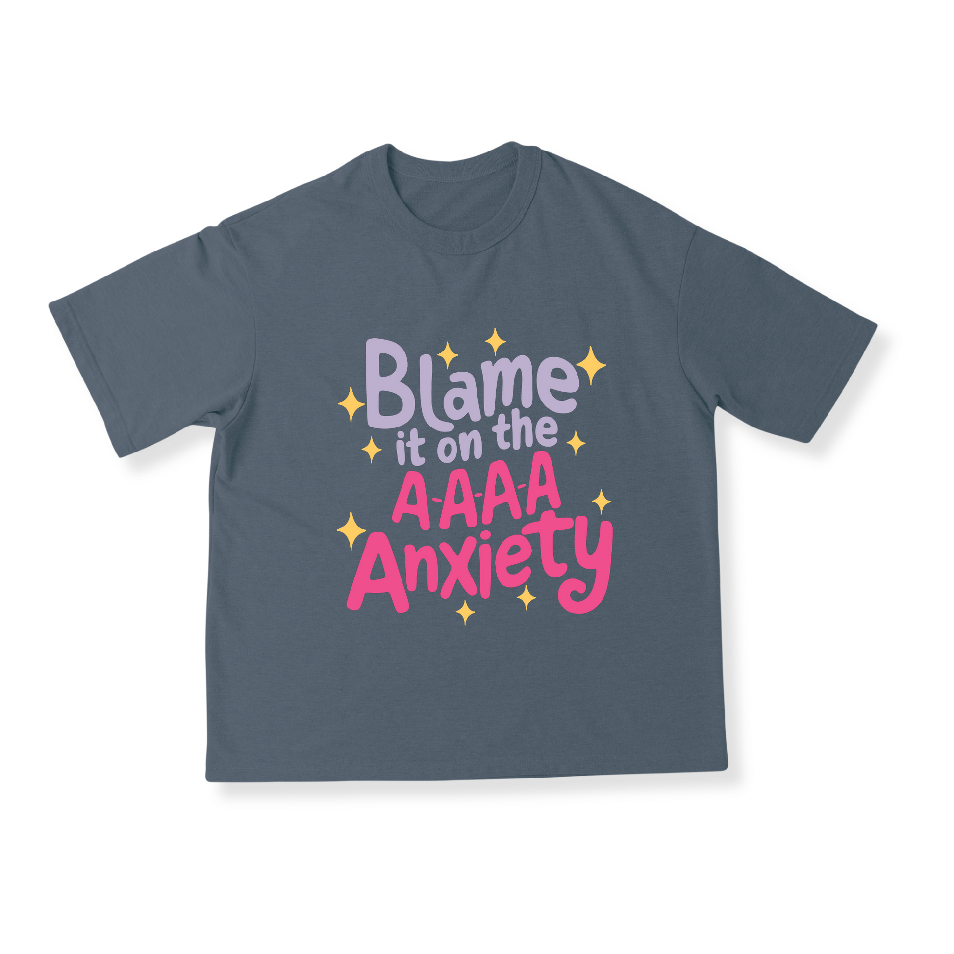 Get cozy this winter in our oversized steel grey tshirt. Made from high quality french terry, these unisex tshirts feature relatable quotes and are 240gsm thick. Perfect for those days when you just want to blame it on anxiety. Shop now and add some quirk to your wardrobe!