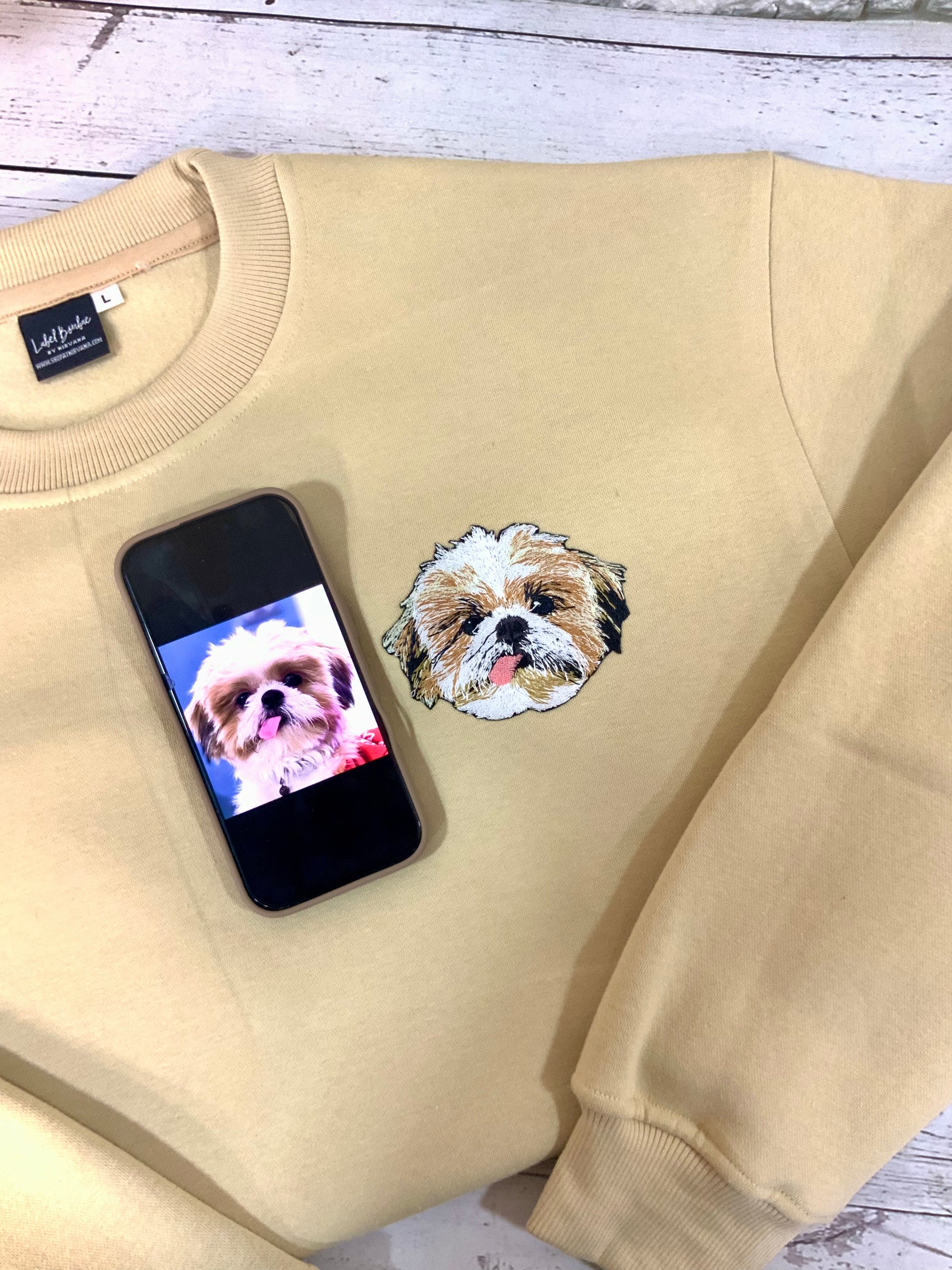 - Custom pet portrait embroidery for a personal touch