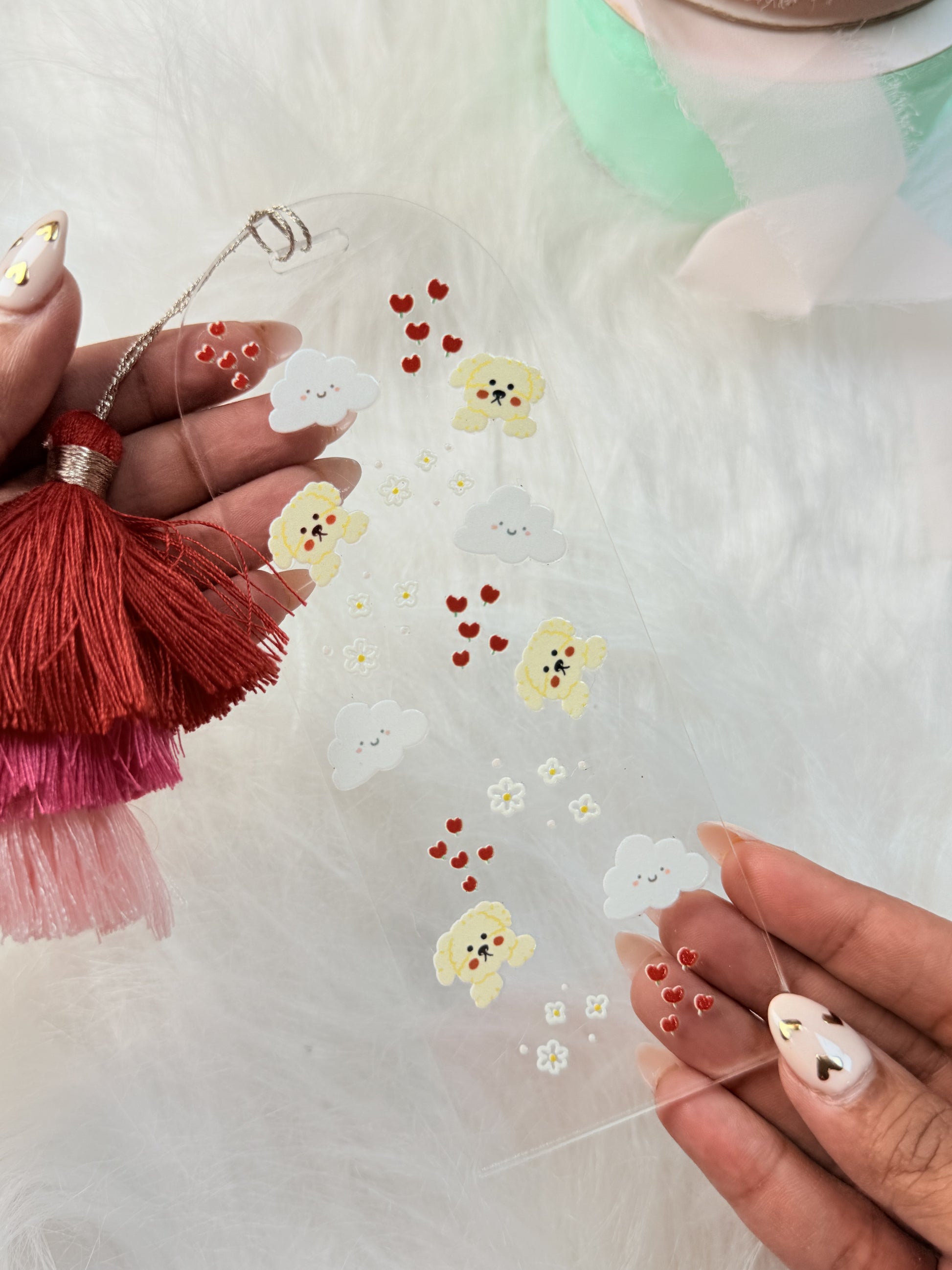 Jazz up your reading game with our Dogo & Clouds Acrylic Bookmark! Perfect for bookworms or as a thoughtful gift, this UV printed bookmark is both practical and pretty. Show off your quirky side and add some fun to your reading routine.