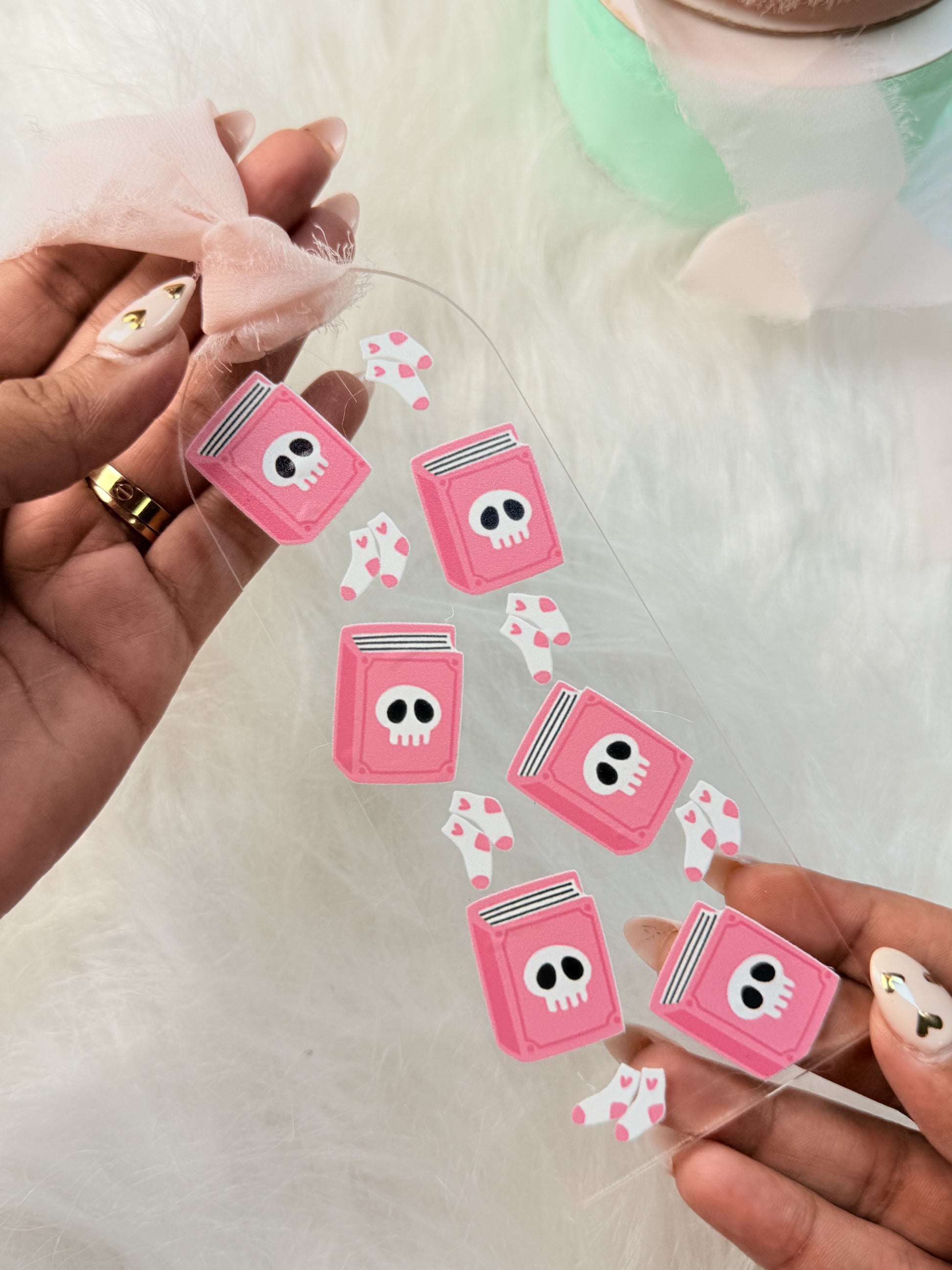 Jazz up your reading game with our Skull & Books Acrylic Bookmark! Perfect for bookworms or as a thoughtful gift, this UV printed bookmark is both practical and pretty. Show off your quirky side and add some fun to your reading routine.