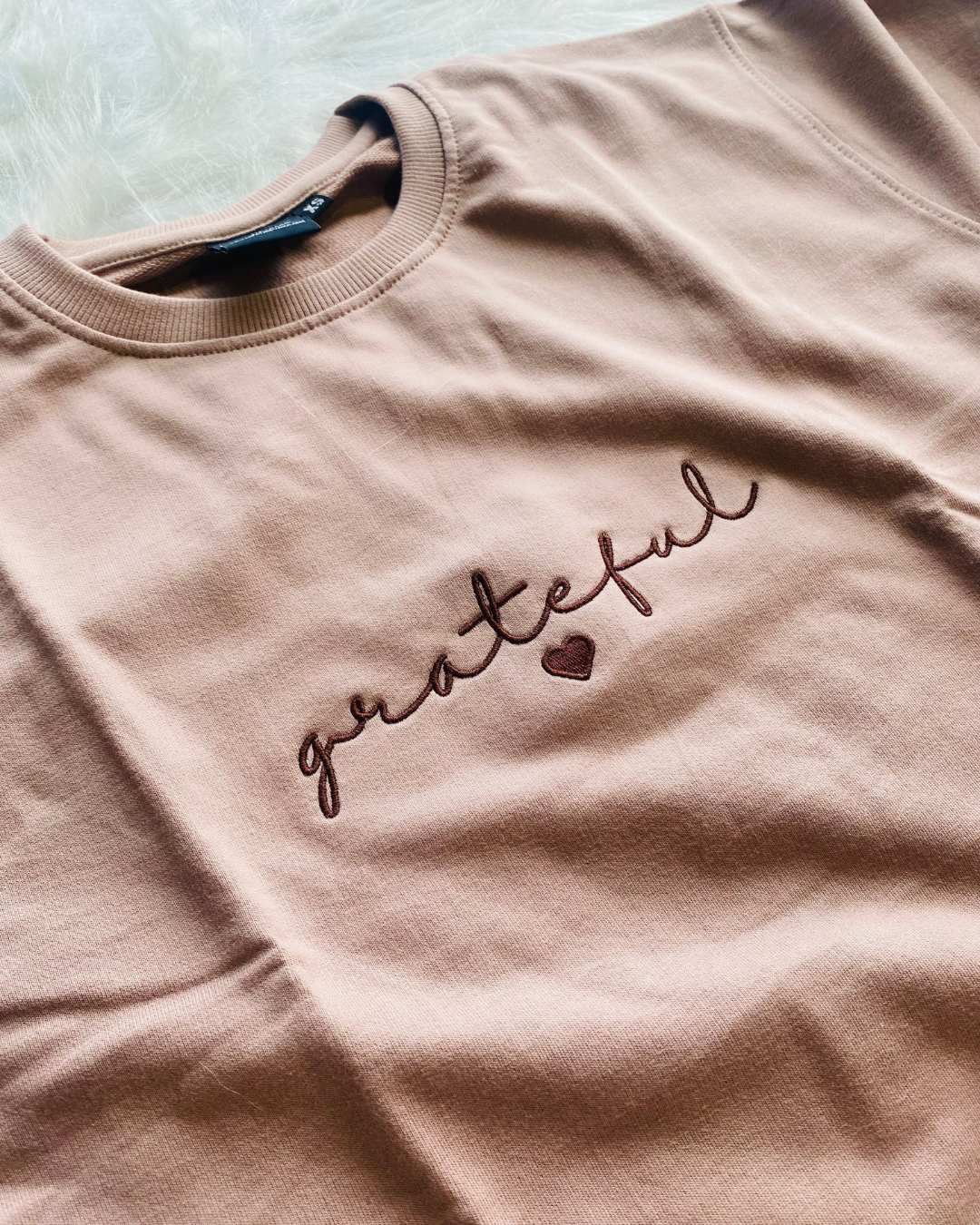 GRATEFUL DREAM EMBROIDERED OVERSIZED TSHIRT IN LATTE