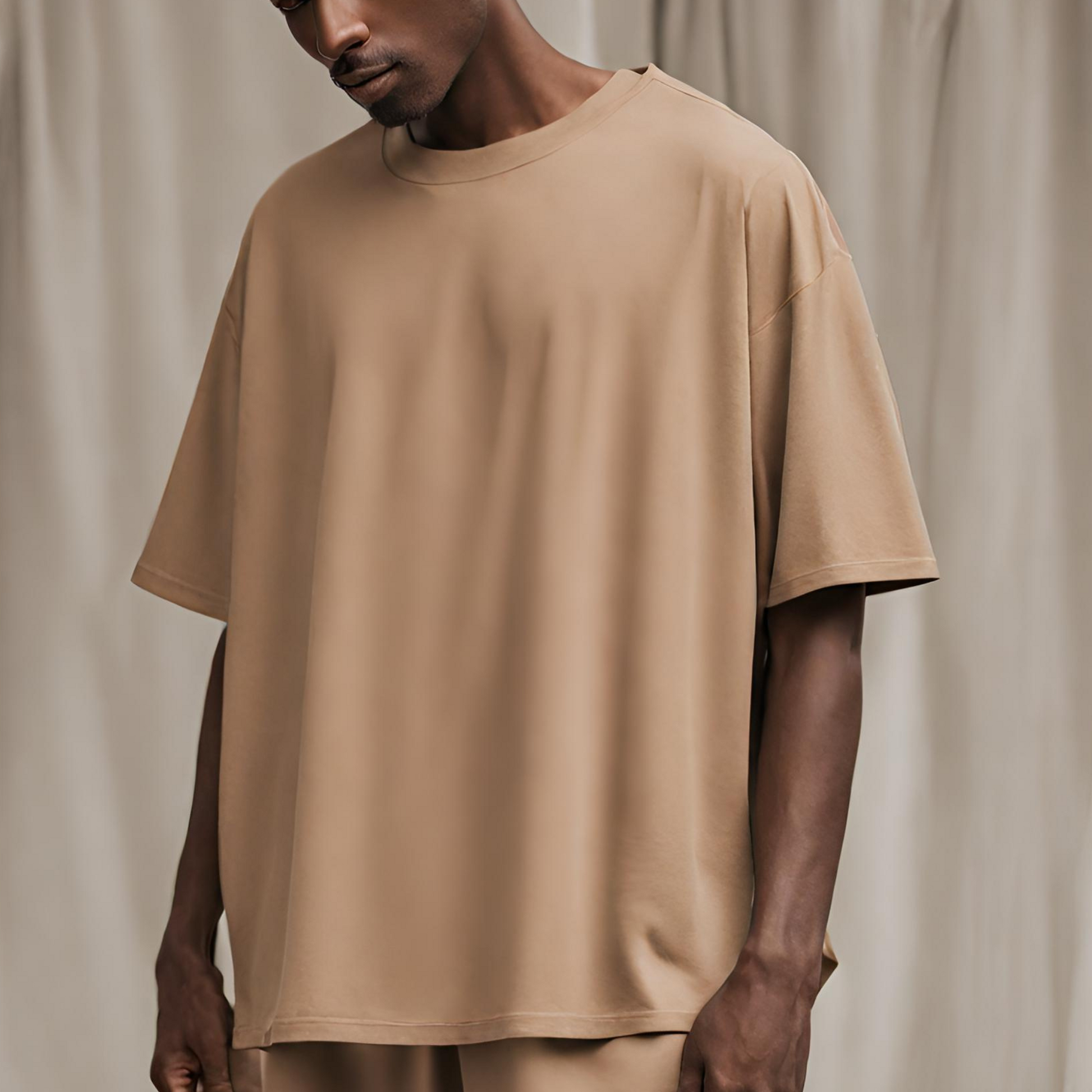 This unisex T-shirt is in a heavy weight terry fabric, with a wide round rib-trimmed neckline.