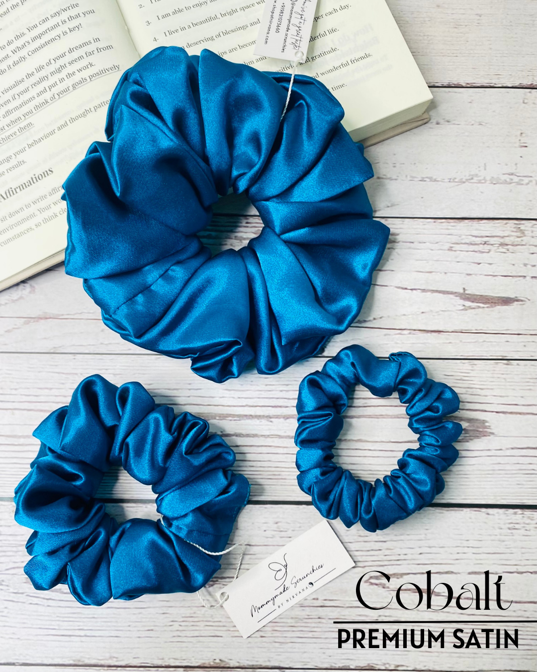 COBALT SOLID PREMIUM SATIN SCRUNCHIES