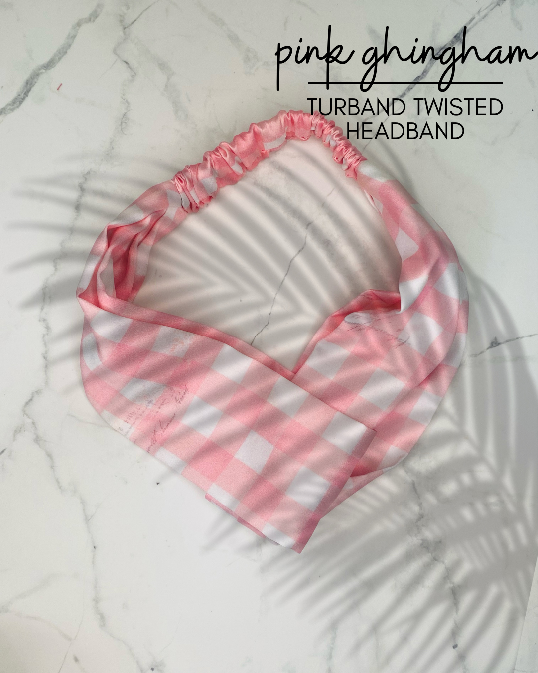 PINK GHINGHAM - SATIN TURBAND HEADBAND