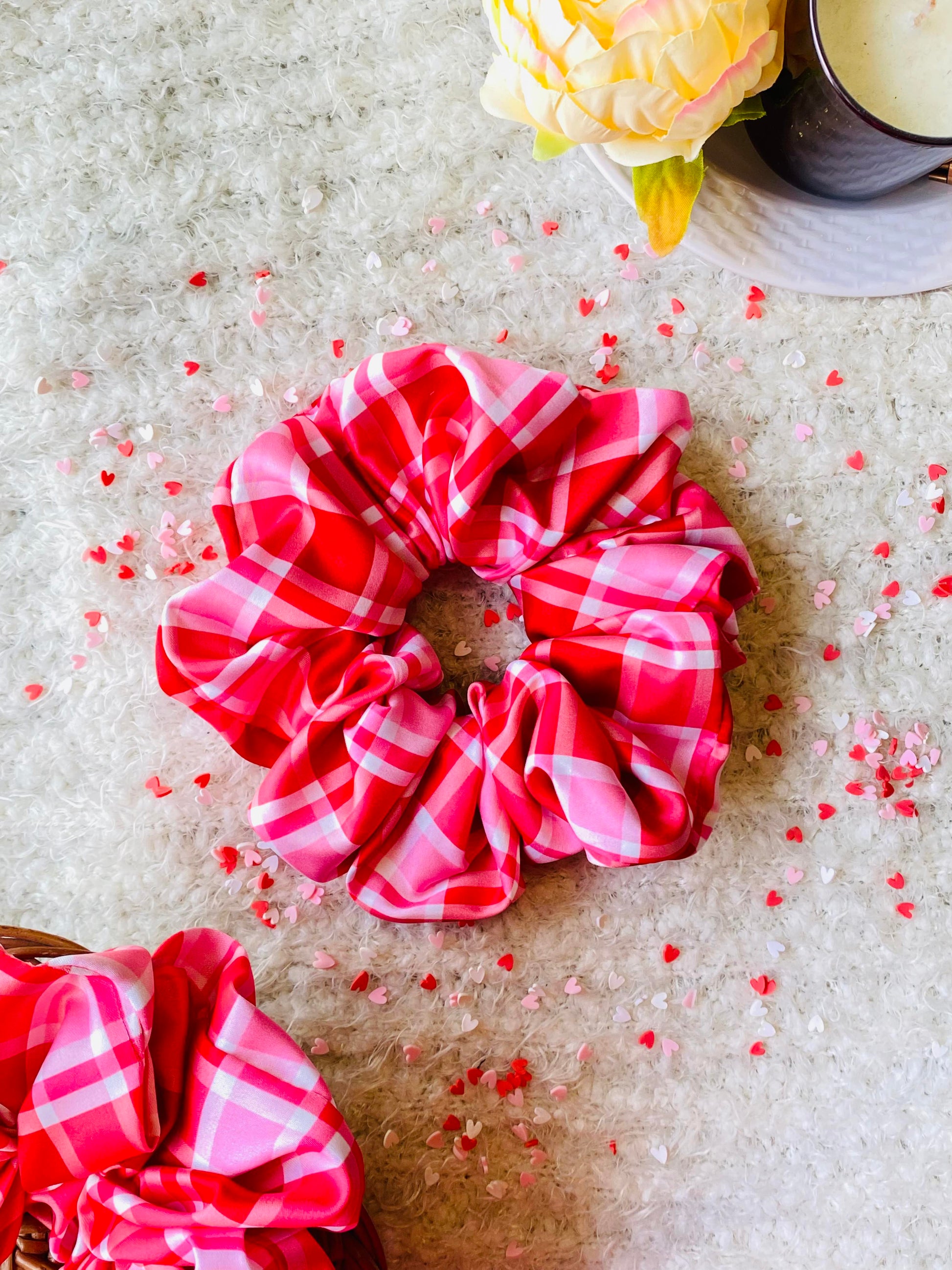 RED CHEX - PREMIUM SATIN SCRUNCHIE