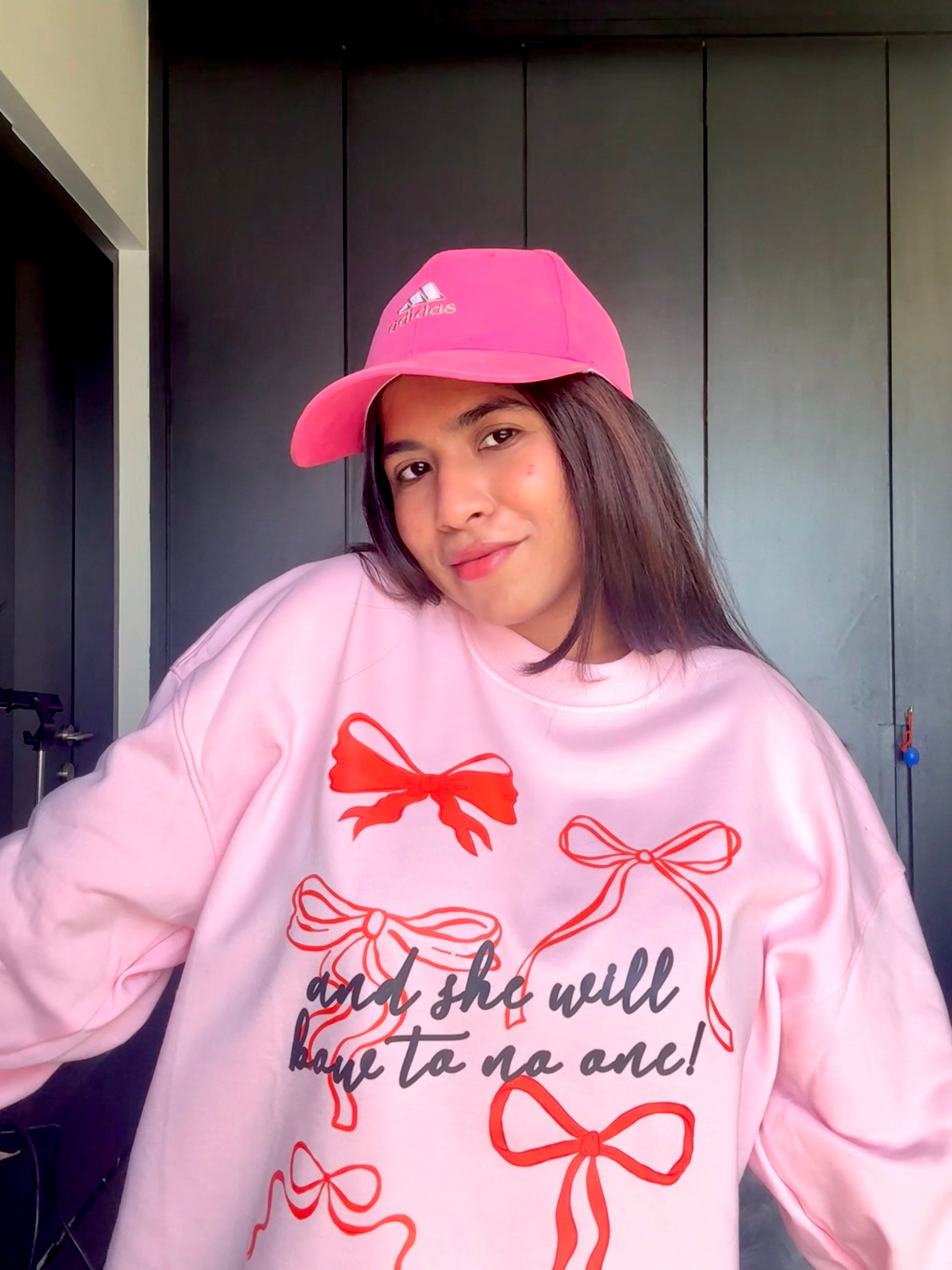 SHE WILL BOW TO NO ONE PINK OVERSIZED SWEATSHIRT